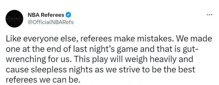 同時NBA裁判官方今日更推道歉